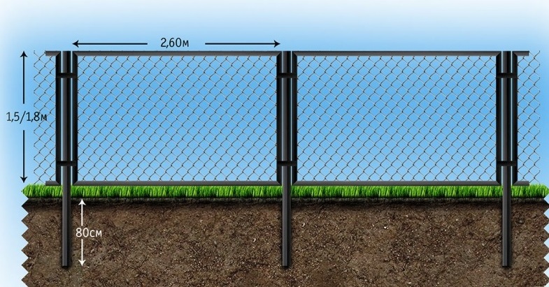- Монтаж стовпів. На початку встановлюється кутові конструкції, які будуть брати на себе базове навантаження. Далі монтується вхідна група, після чого робиться встановлення звичайних стовпів з проміжком приблизно в 2,5 м.